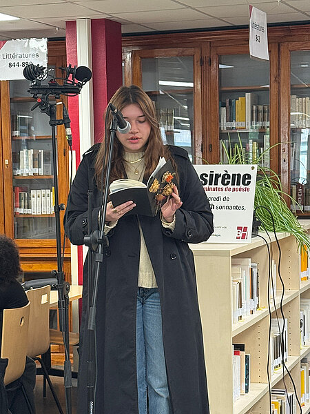 Michel Andriamalala, Aelis Lalmand, Léa Normand, Chloé Ryckaert, Selma Sellatnia, Anaïs Volnier, Mathilde Maurer et Henri De Wilde D'Estmael liront des poèmes extraits de leurs recueils réalisés lors du cours sur la poésie brève dispensé par Sabrina Messing (Licence 1, 2024-2025).